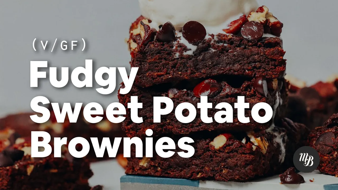 Incredibly fudgy, naturally sweetened brownies made with cooked sweet potato, cacao, almond butter, and oats. Topped with pecans and chocolate chips for a healthier, vegan and gluten-free treat.